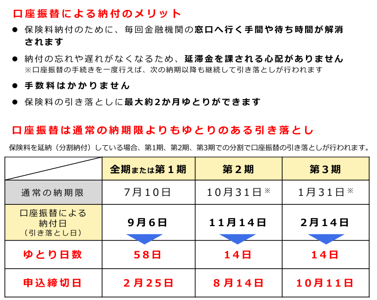 残念なことに今回1期分の口座振替申込期限は終了していますが、次回に向けて事前の申込をお勧めします。