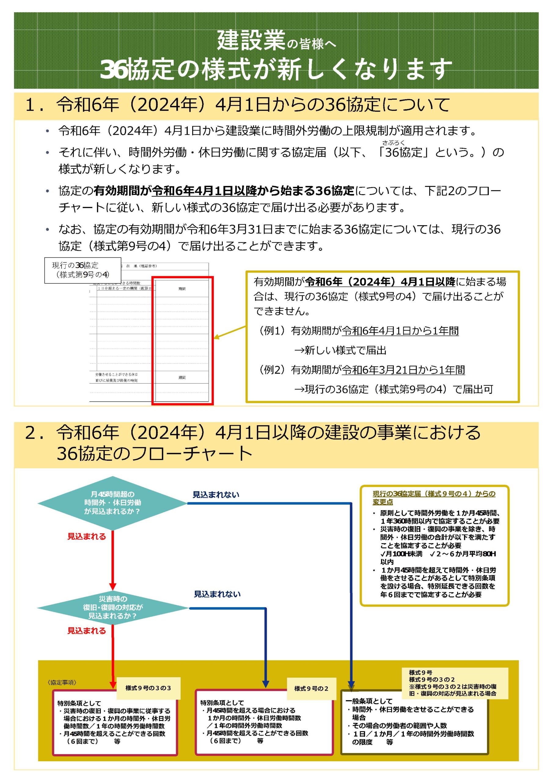 建設業の皆様へ「36協定の様式」合っていますか!
