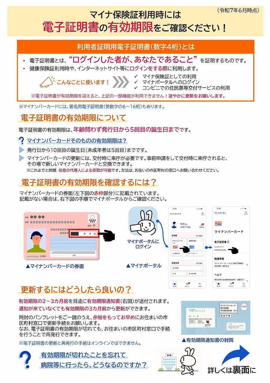 年金事務所の回答は、マイナンバーカードの電子証明書の有効期限切れから3ヵ月が経過したので、資格確認書を交付していますとのことでした。(電子証明書の有効期限切れから3ヵ月間はマイナ保険証で受診ができます。)