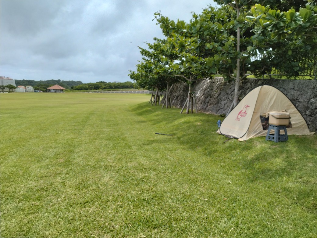 強風の日、ポップアップテントが悲惨なことになることを知る前の写真です笑