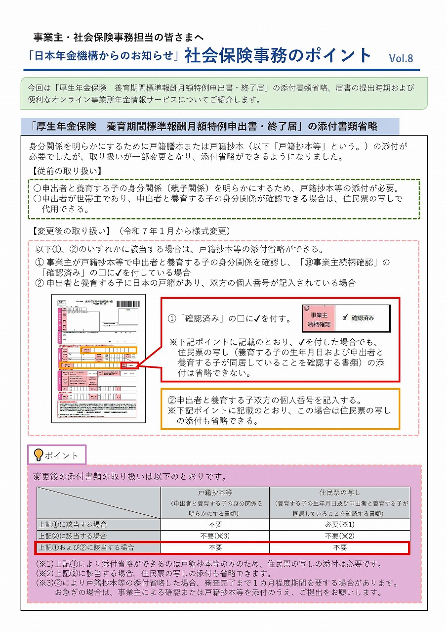 「日本年金機構からのお知らせ」社会保険事務のポイント Vol.8より