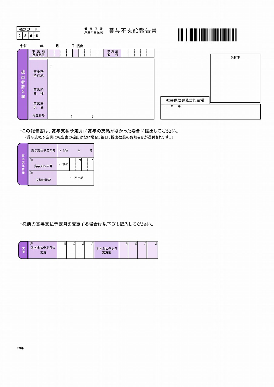 登録した月にすべての被保険者に支給がなかった場合は、賞与不支給報告書の提出をします。