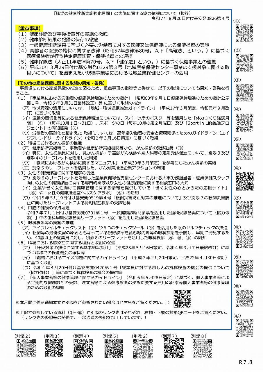 厚生労働省では、毎年9月を「職場の健康診断実施強化月間」としています。