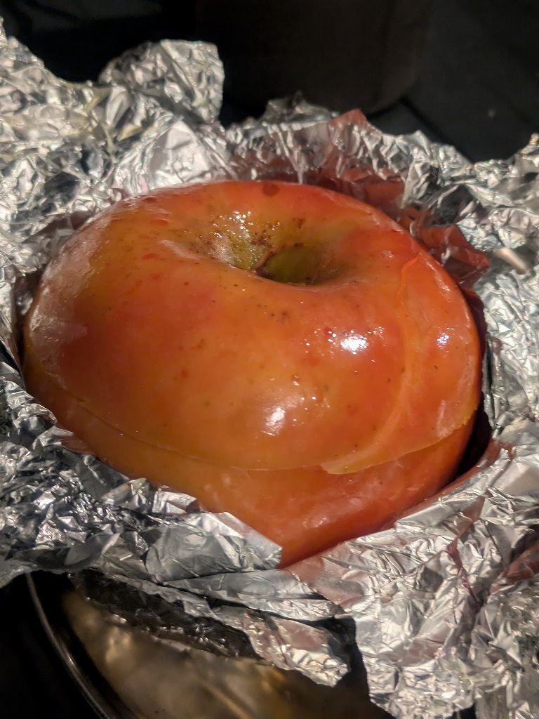 リンゴの下をナイフで貫通させ味が逃げてしまったことと、