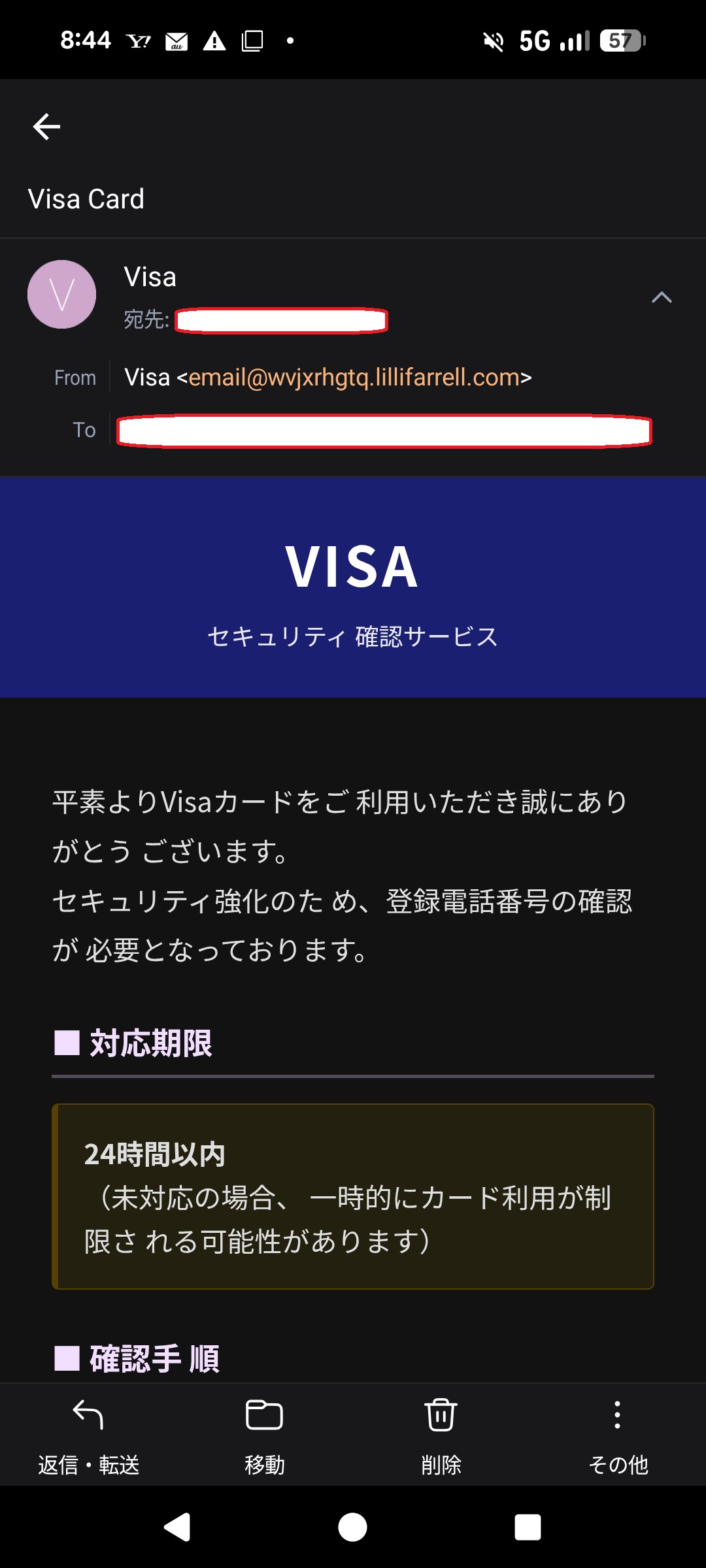 本メールは、Visaカードを発行している会社から送られたと思わせるような内容で、