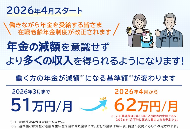 これまで(2025年度現在)は、この基準額が「約50万円(毎年度の改定により変動あり)」でした。 そのため、「お給料と年金を合わせて基準額を超えないように、勤務時間を減らそう」と調整されるベテラン社員の方が多くいらっしゃいました。
