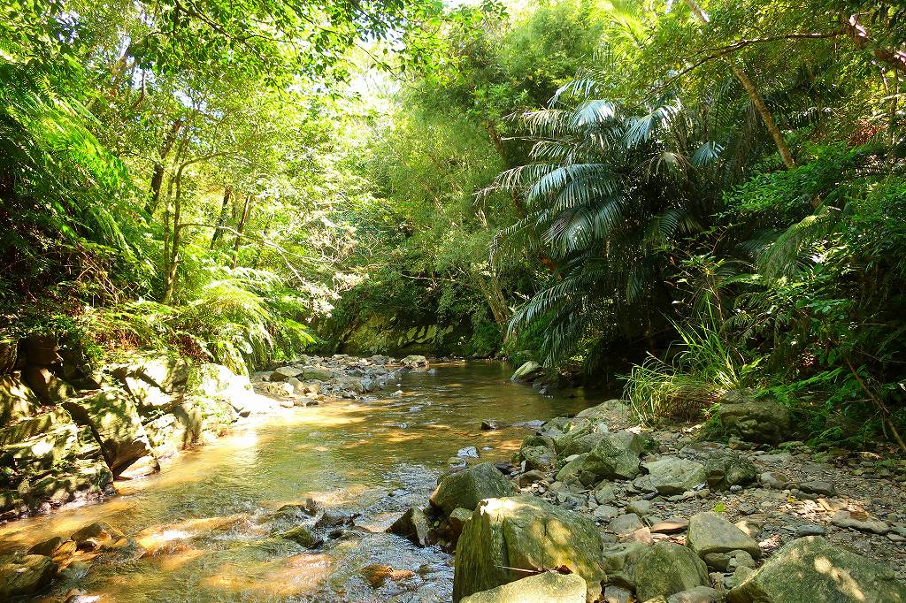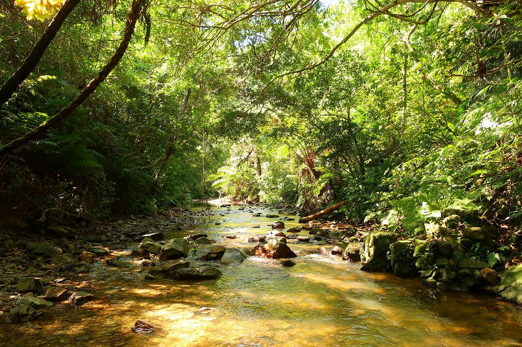 きれいな川を歩いて滝まで歩いて行くことができます。