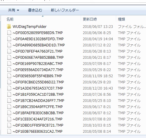 すると、画面上にパソコン内でのtempデータ(一時的なデータ)が表示されます。