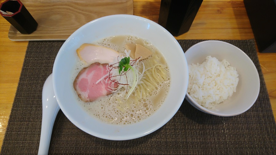 西原町小橋川 らぁ麺 やな木 の鶏白湯らぁ麺です。