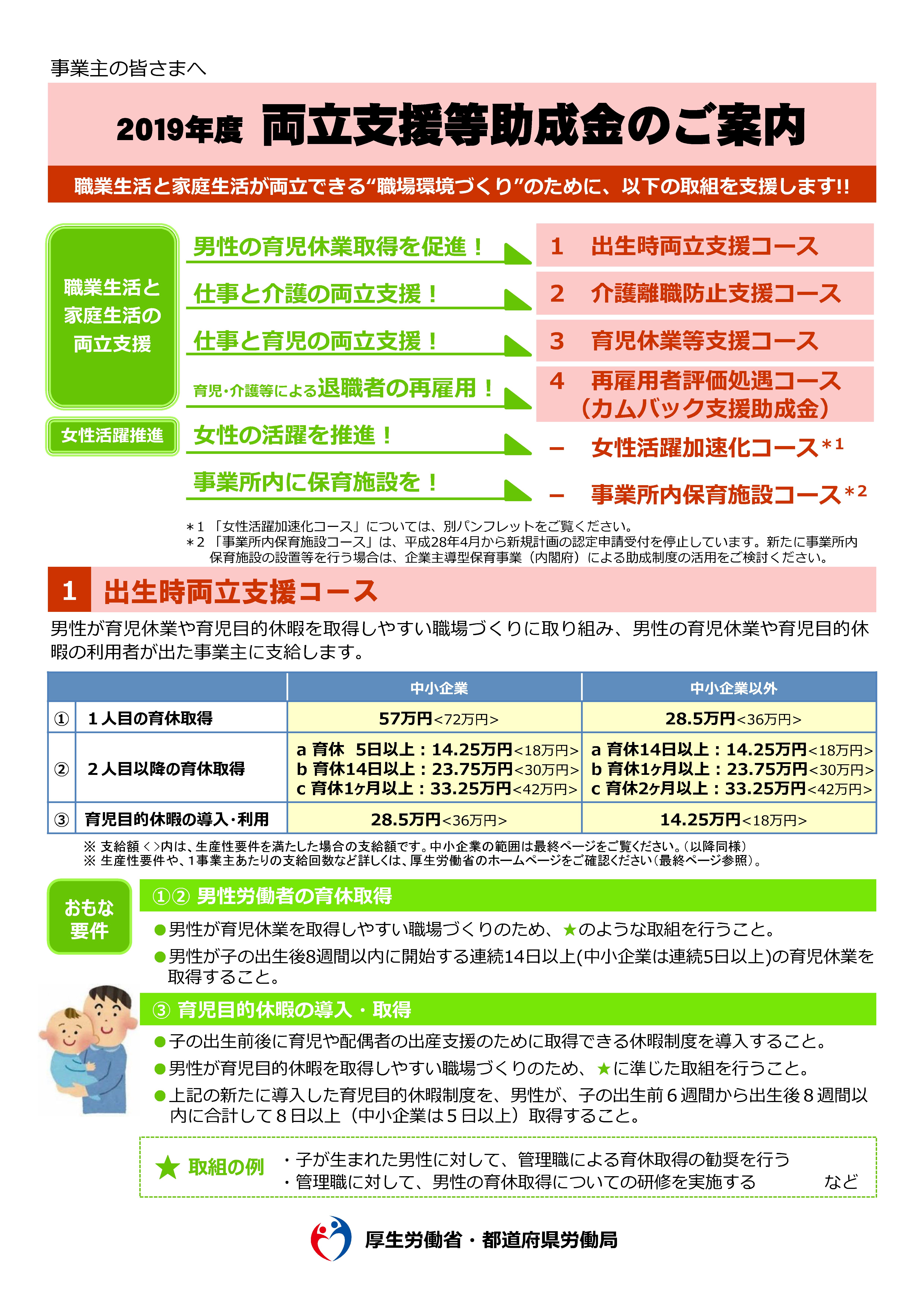 現在厚生労働省の両立支援等助成金には5つのコースがあります。