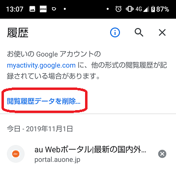 III. 画面内の『閲覧履歴データを削除…』をタップする。