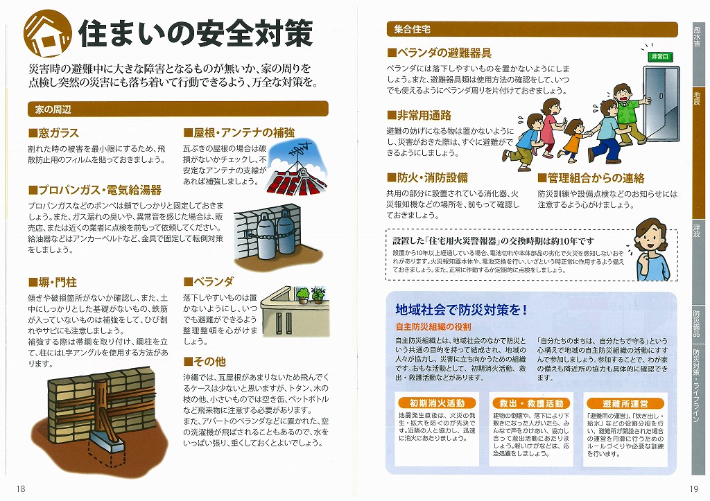災害時の避難中に大きな障害となるものが無いか、家の周りを点検し突然の災害にも落ち着いて行動できるよう、万全な対策をとりましょう。