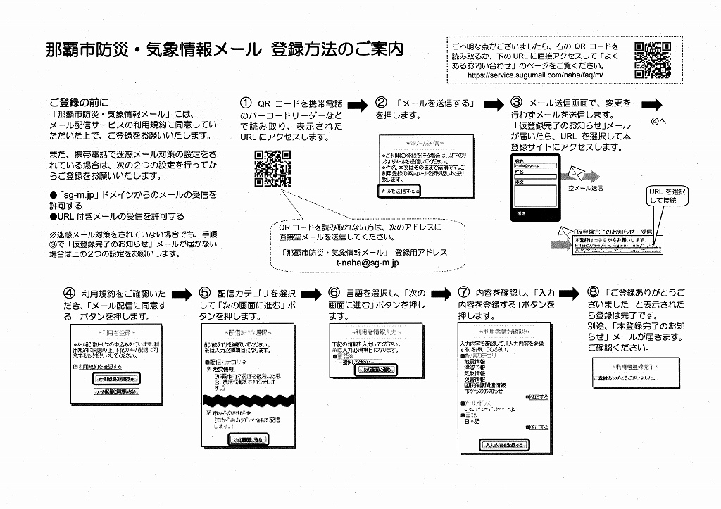 那覇市では防災・気象情報メールを配信するサービスを実施しています。