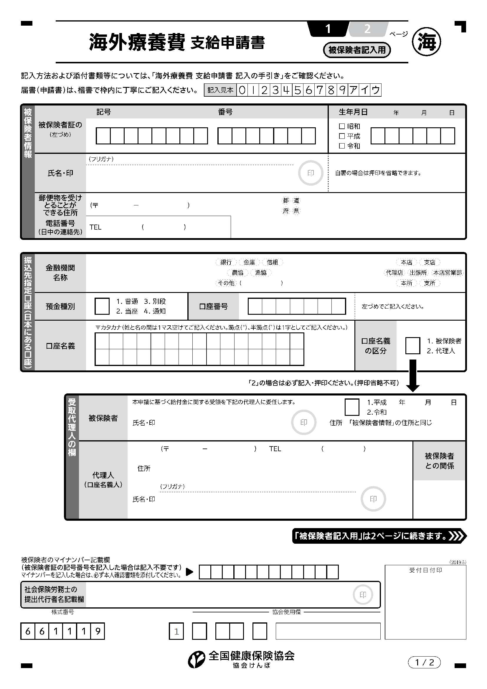 ① 海外療養費支給申請書