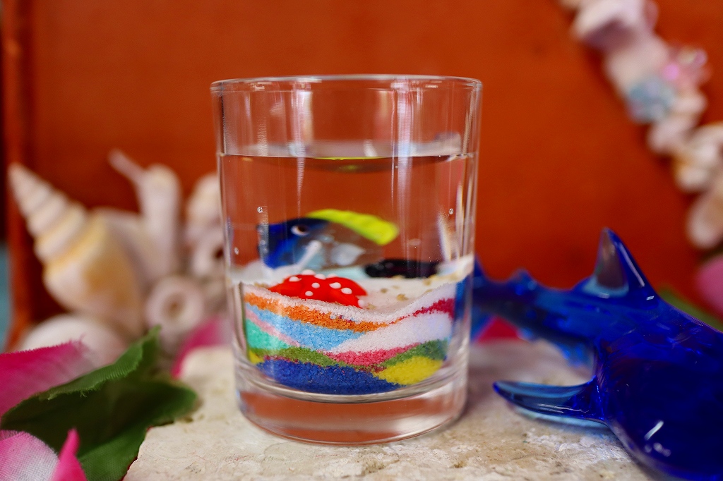グラスに色がついた砂を積み上げて作るジェルキャンドルはご存じですか。