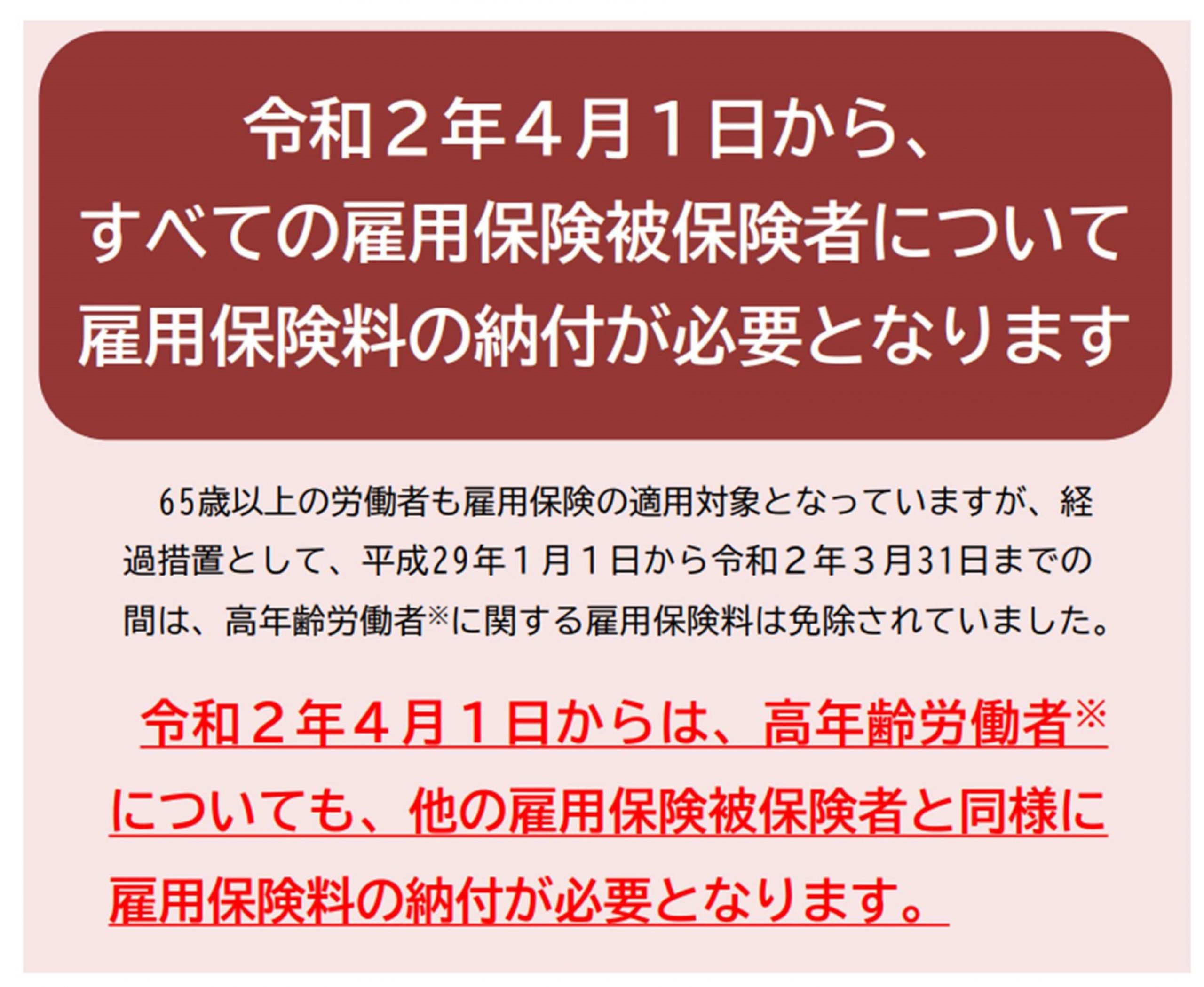 さて、気を取り直して、今日は今年4月から65歳以上の方も雇用保険料の徴収が開始になりますので、ご案内させて頂きます!