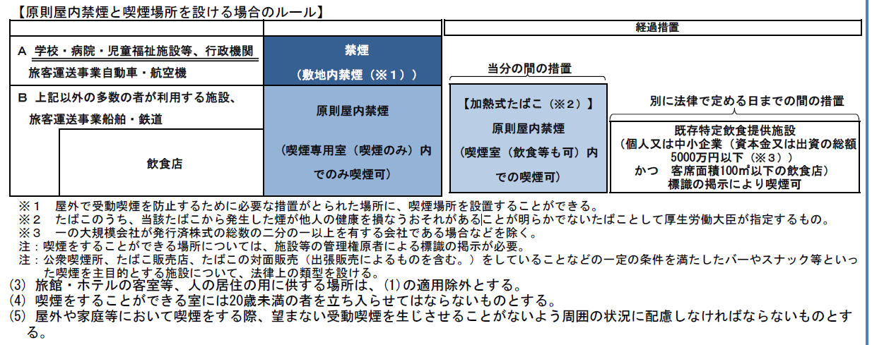 (※屋外で受動喫煙を防止するために必要な措置がとられた場所に、喫煙場所を設置は可能)