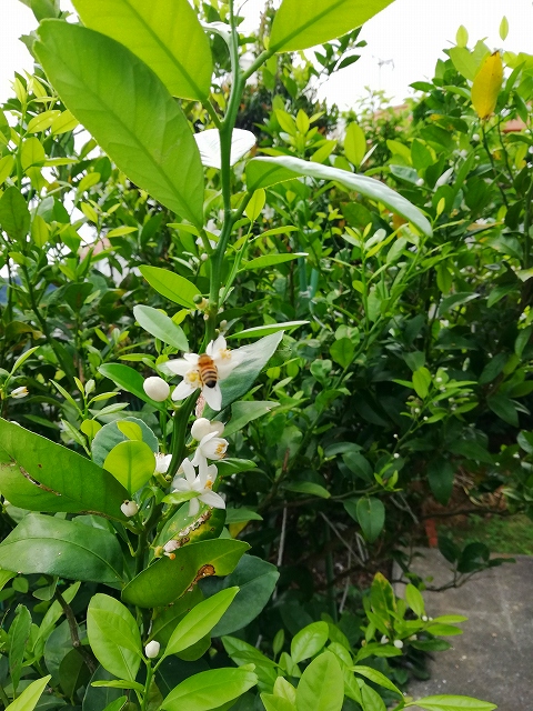 最近友人との語らいもめっきり減って気分が滅入っていましたが、庭のシークワーサーを眺めていると受粉しているミツバチを発見してほっこりと癒されました(#^.^#)