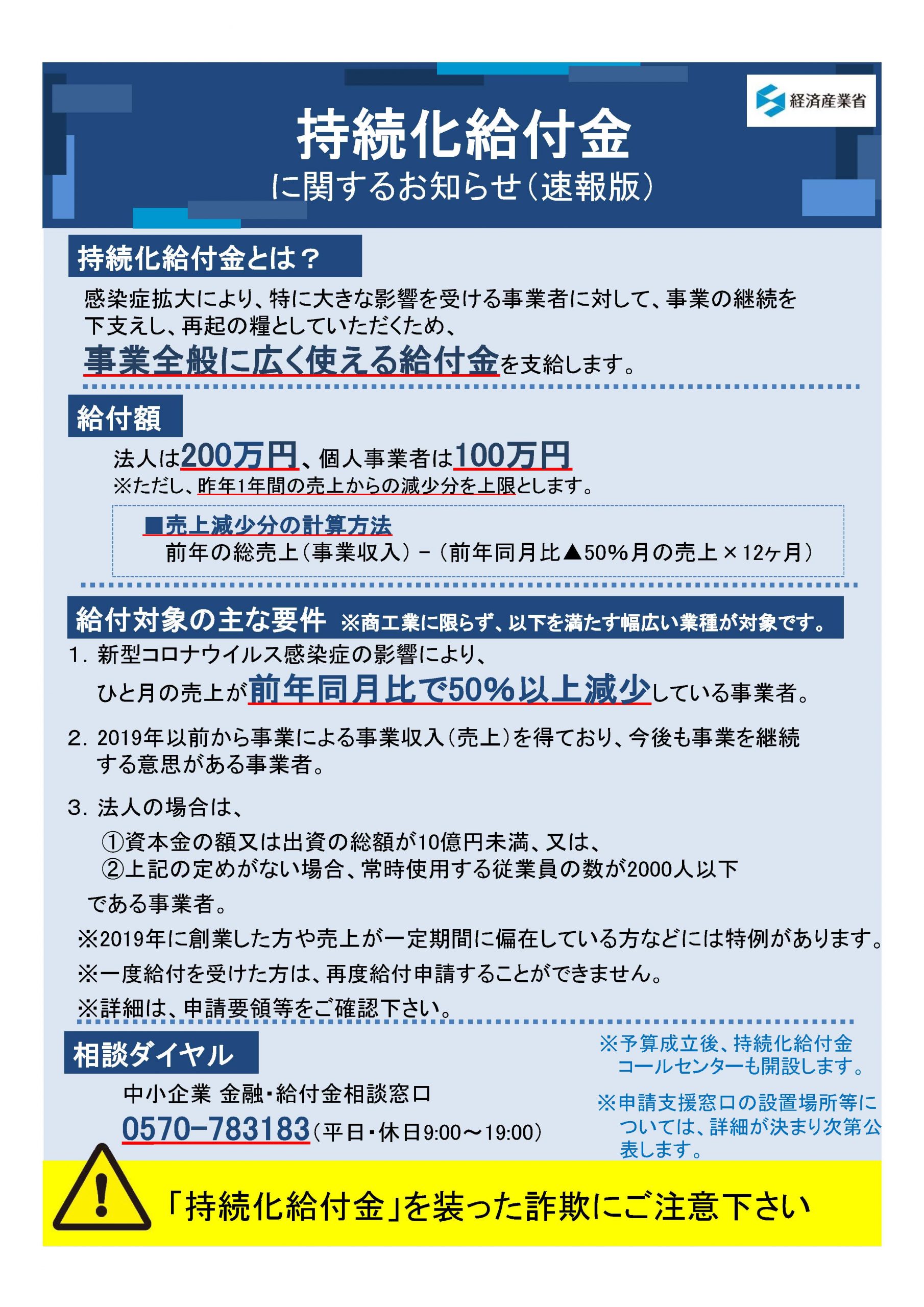 「持続化給付金」活用してください!