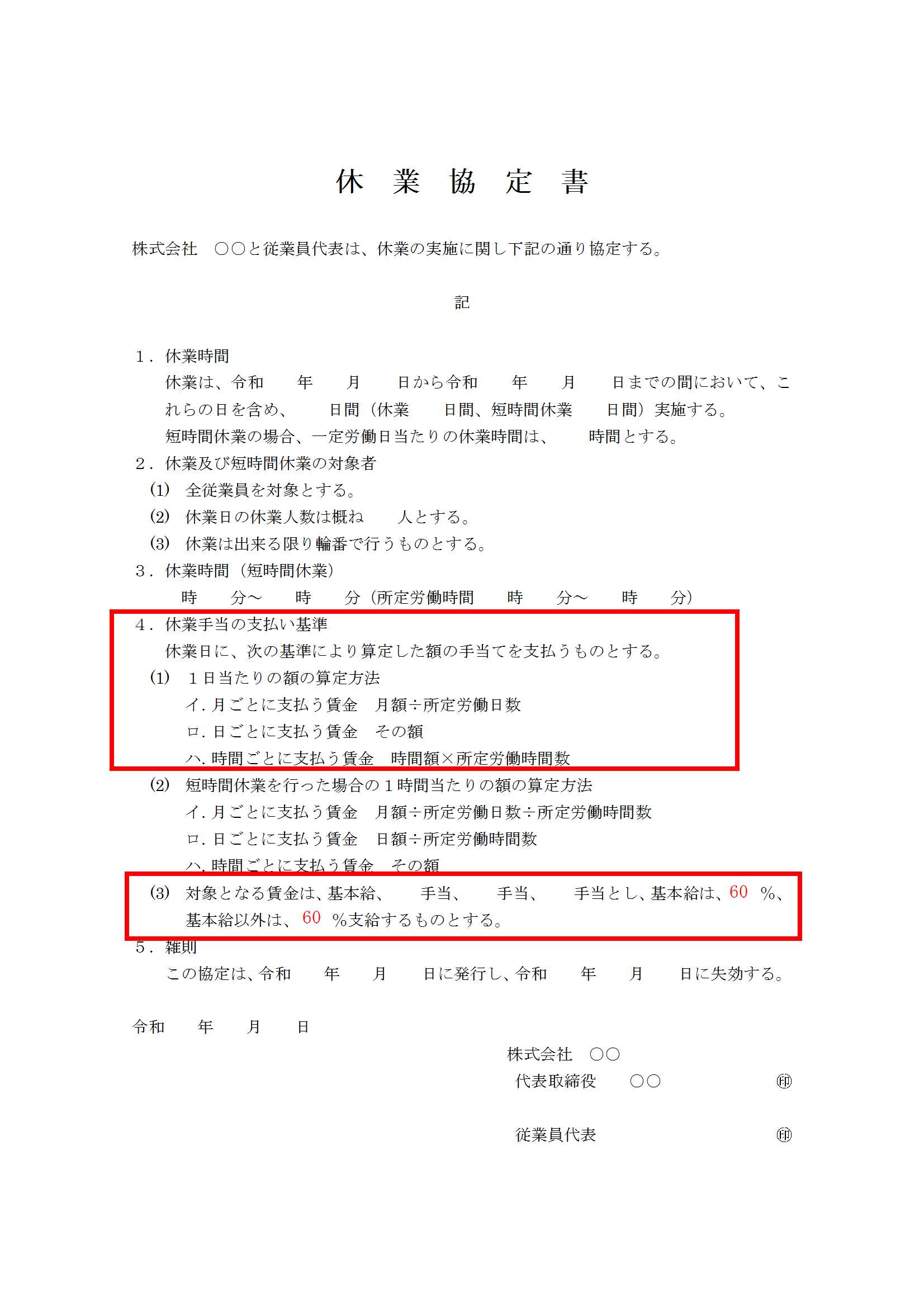例えば、下記の休業協定書で、従業員と協定を交わしていた場合・・・