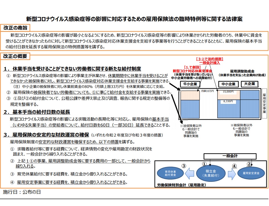参考:新型コロナウイルス感染症等の影響に対応するための雇用保険法の臨時特例等に関する法律案 厚生労働省