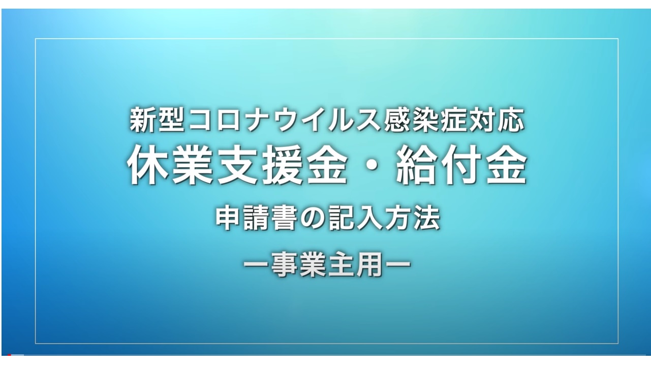 新型コロナウイルス感染症対応休業支援金・給付金の記入方法の動画が公開されています!