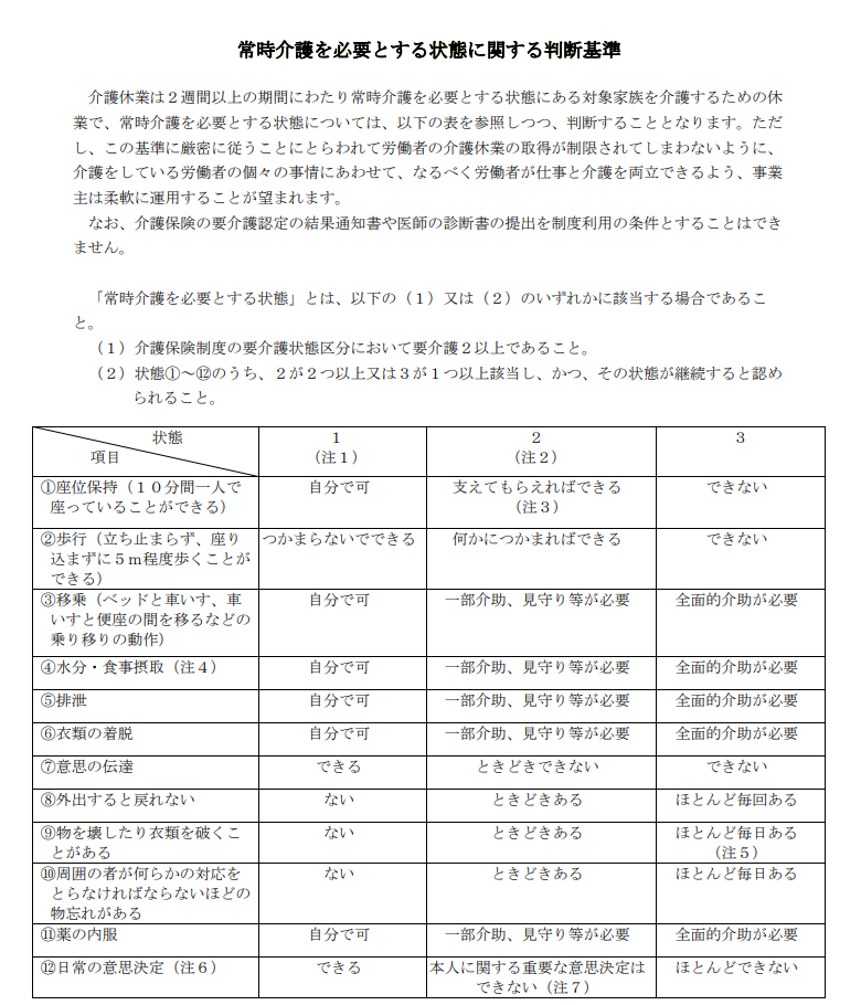 介護休業制度の「常時介護」ってどんな状態?