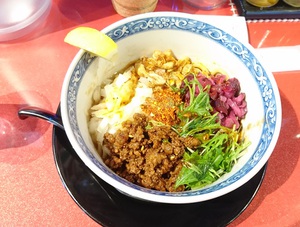 読谷村字大木 オカゲサマ製麺食堂の汁なし担担麺です。ミシュランガイドでも評価されたメニューだそうです