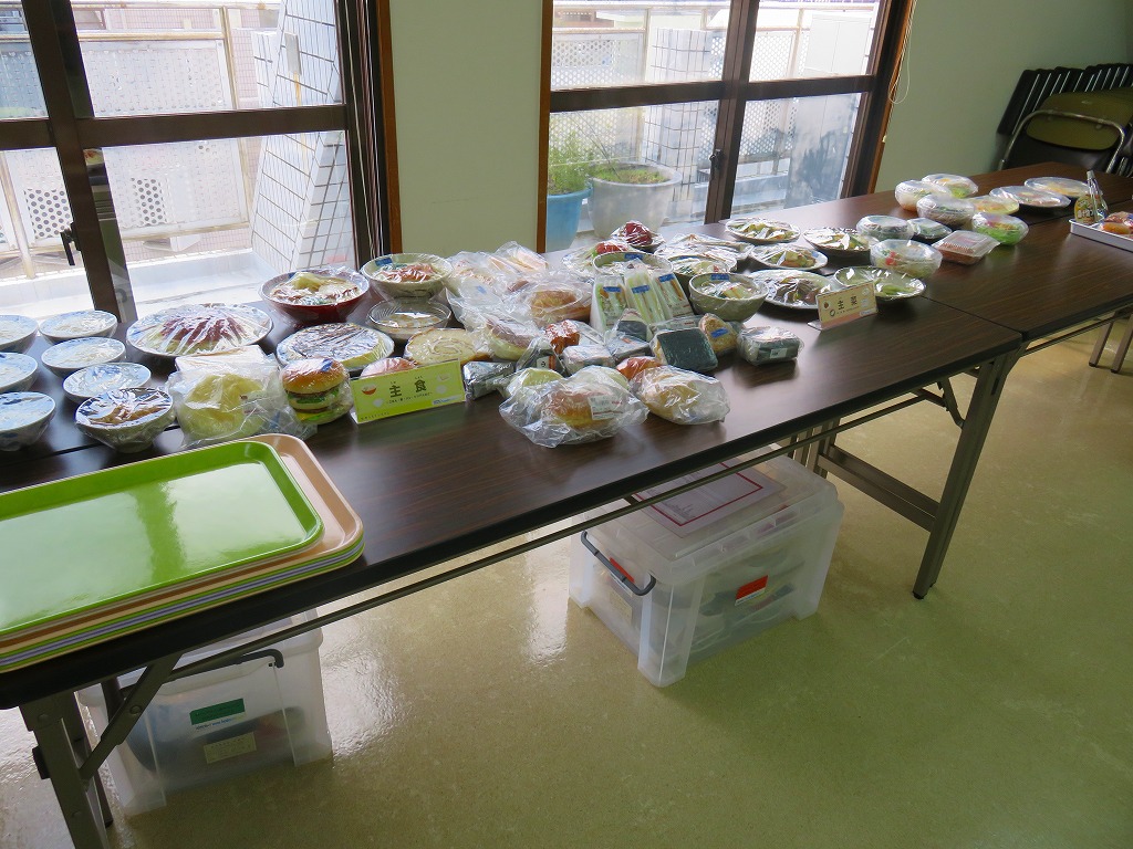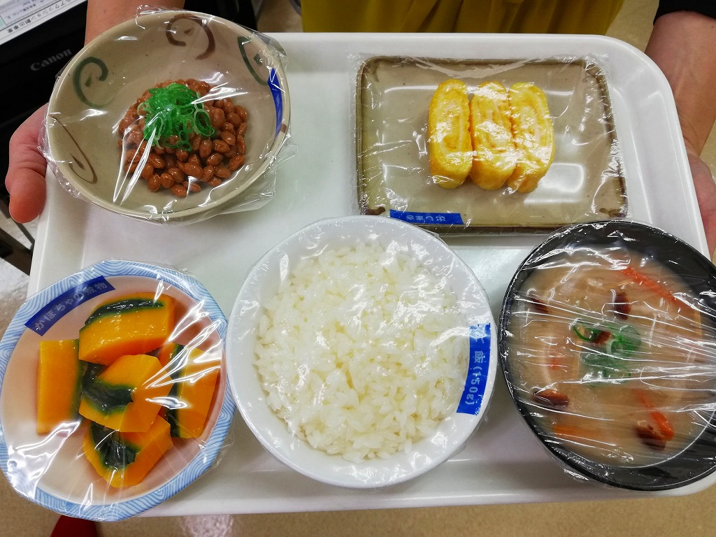 ①フードモデル(タグ付けされたサンプル」から普段の朝食をトレイの上に並べます。