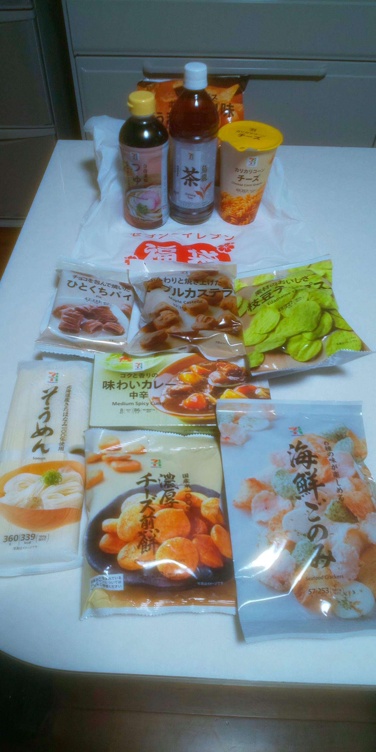 5/28にオープンしたセブンイレブン壺川1丁目店の福袋(レギュラーコーヒー引換券もありました)。1,400円でこの内容はお得…かどうかは人それぞれ。