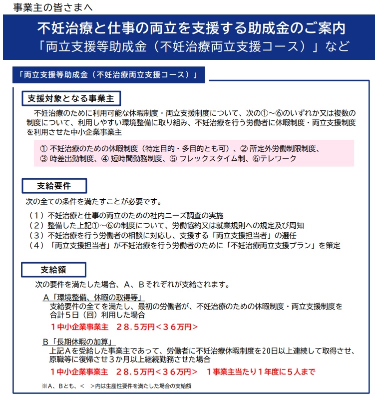 不妊治療のための休暇制度に関する助成金があります!