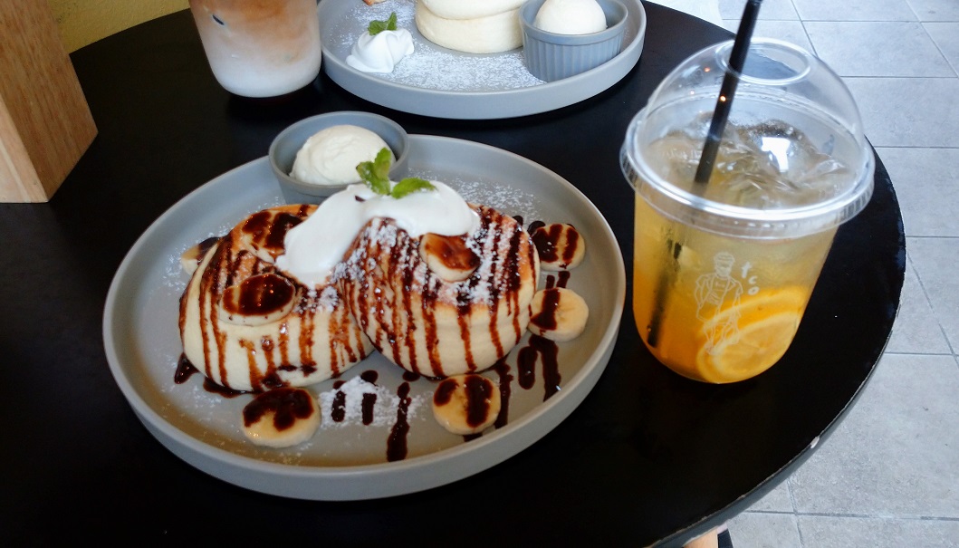 恩納村にある trip cafe okinawa のチョコバナナパンケーキです。