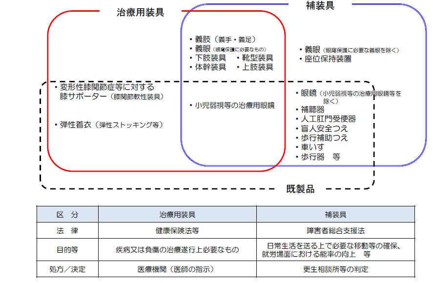 ↑治療用装具の赤の範囲が、健康保険からの療養費の対象となります。