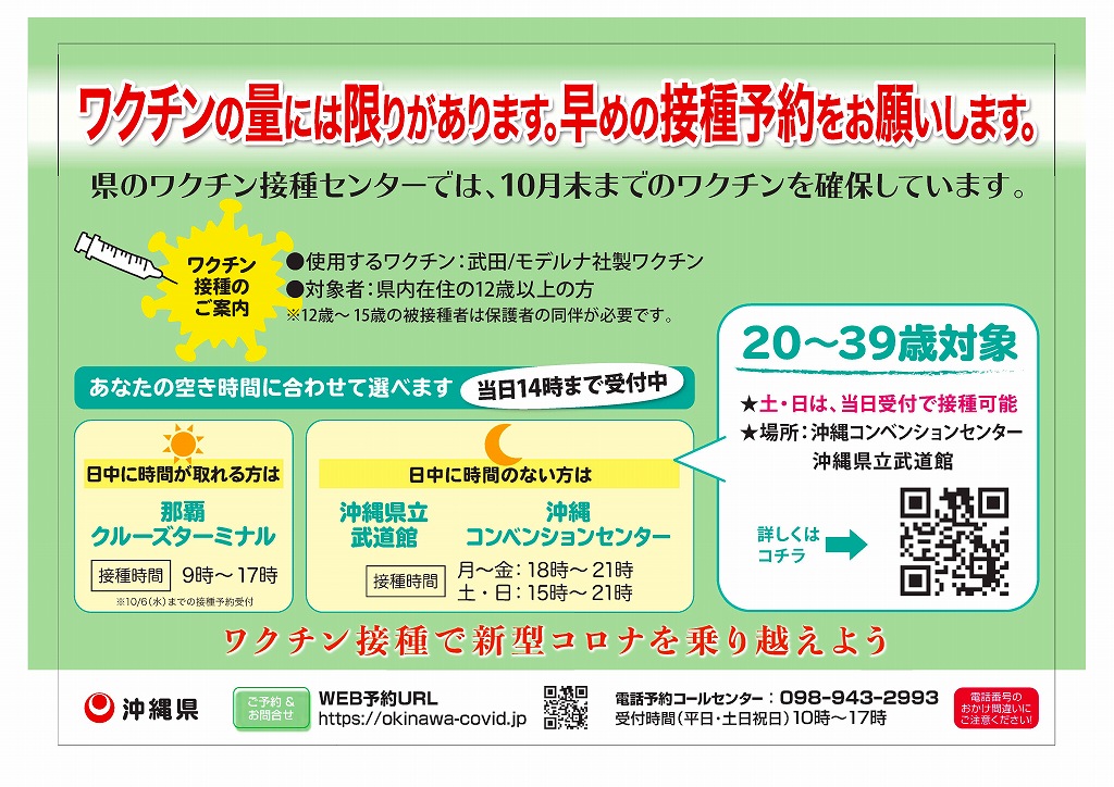 沖縄県では若年層のコロナウイルスの接種率が低い傾向にあるそうです