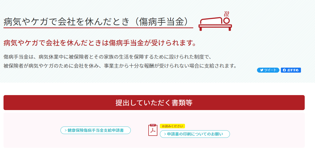 被保険者が業務外の事由による療養のため労務に服することができない(働けない)ときは、その労務に服することができなくなった日から起算して3日を経過した日から労務に服することができない期間、支給されるもの。