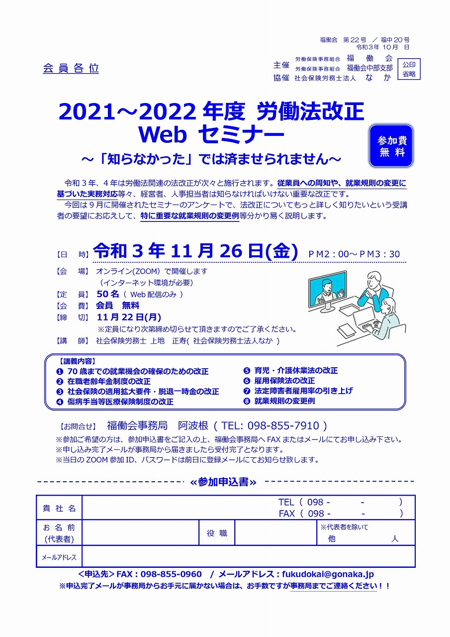 労働法改正セミナー開催します(オンライン)