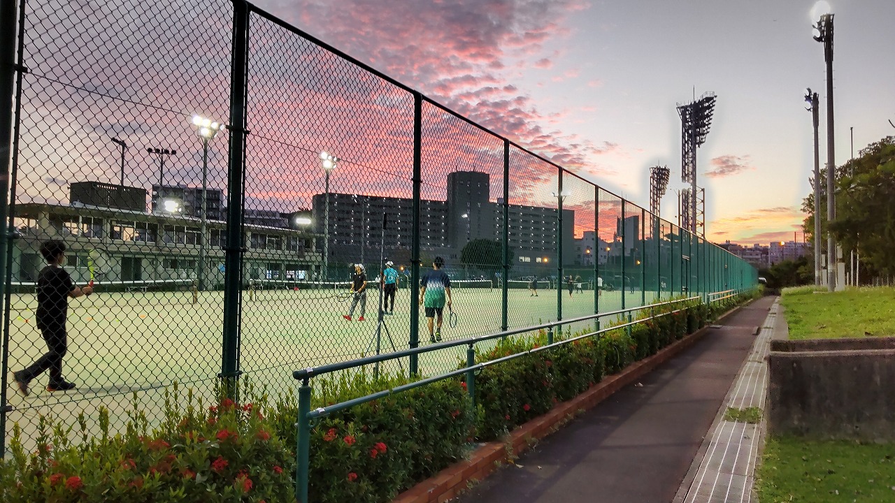 奥武山公園を散歩中のテニスコート。学生時代の部活の思い出が蘇ってきました。