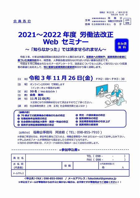 2021~2022年労働法改正セミナー開催しました!