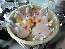 沸騰したお湯の中にお米が入ったハイゼックスを30分間沸騰させます
