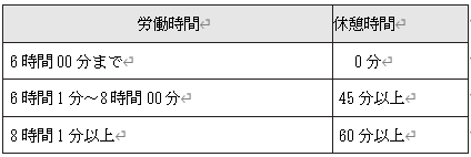 労働時間によって休憩時間をまとめると以下のとおりとなります。