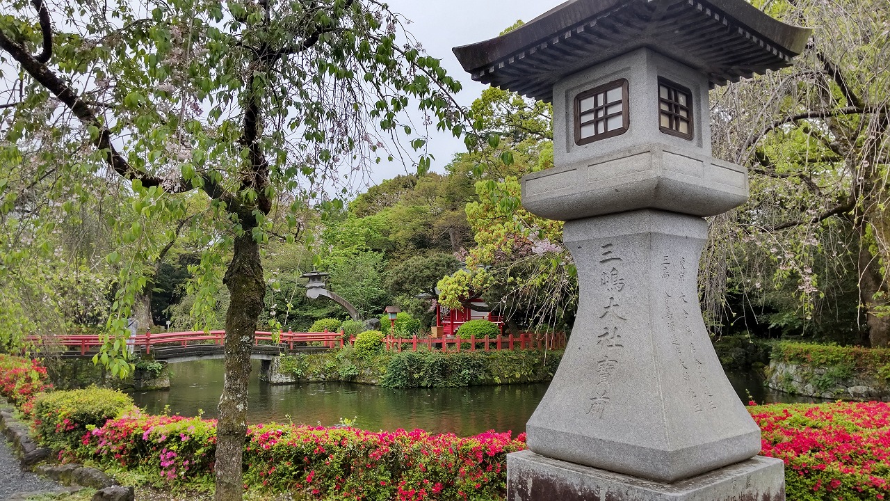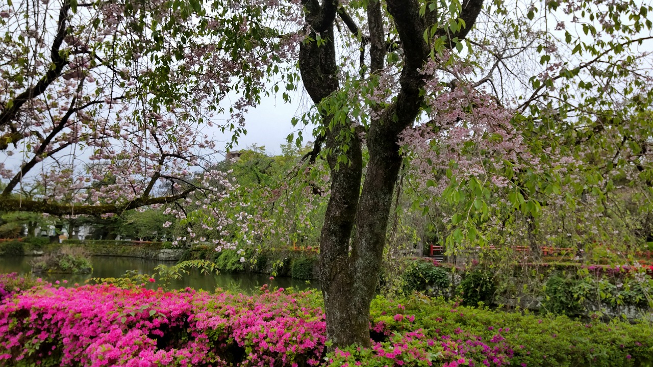 葉桜になりかけですが三嶋大社の「桜とつつじ」のコラボ。今の時期オンリーの風景です(#^.^#)