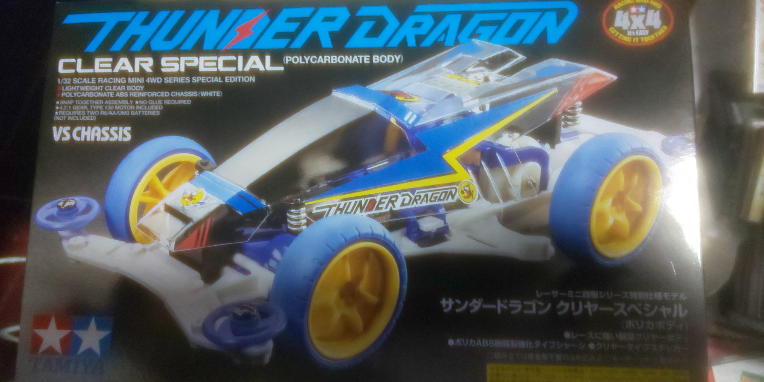 特定の世代には強烈に刺さる、タミヤミニ四駆、ドラゴンシリーズより「サンダードラゴンJr.(未組立)」。もちろん他(スーパー、ファイヤー、セイント)も全て好きです。現在捜索中。