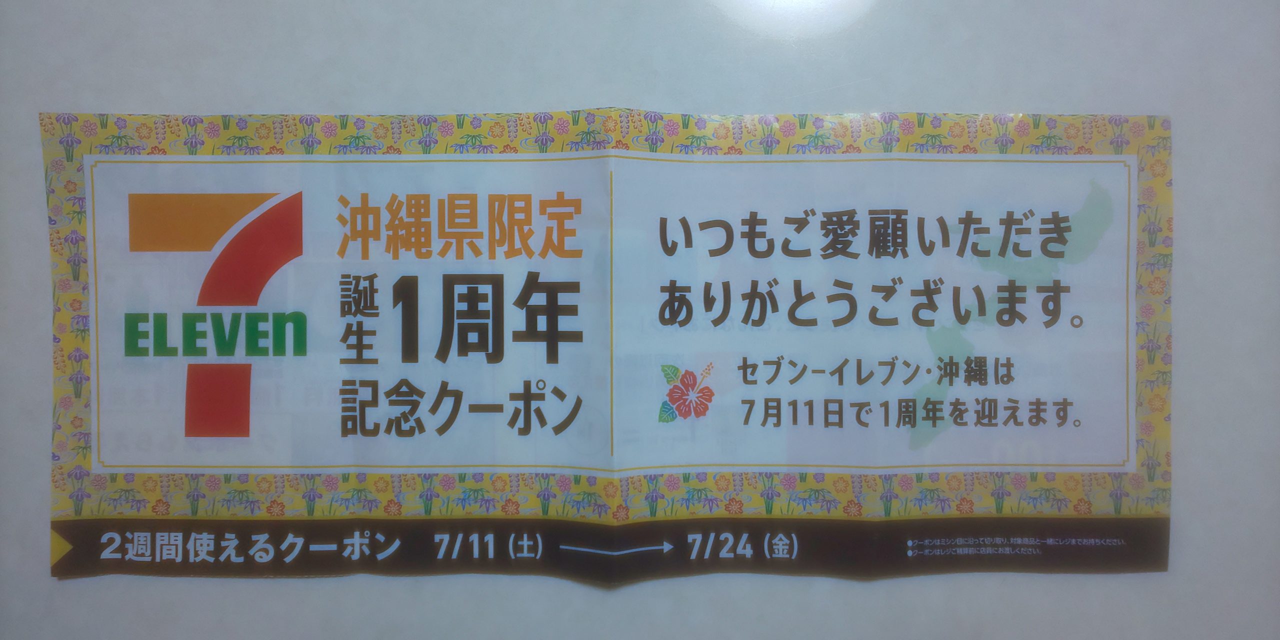 そろそろセブンイレブン沖縄誕生3周年になりますね。今年はどのような特典があるのか期待しております。