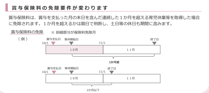 今までは、育児休業が月末から翌月にかかっている場合、その月末のかかる月の社会保険料及び賞与の社会保険料が免除となっておりました。