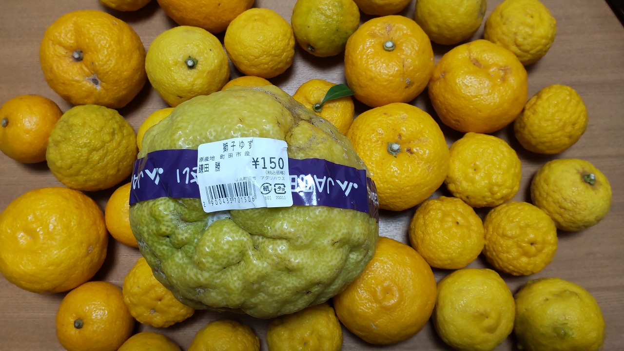 県外の姪から送られてきた柚子達です。いろいろな種類と破格な安さと巨大柚子に(゚д゚)!