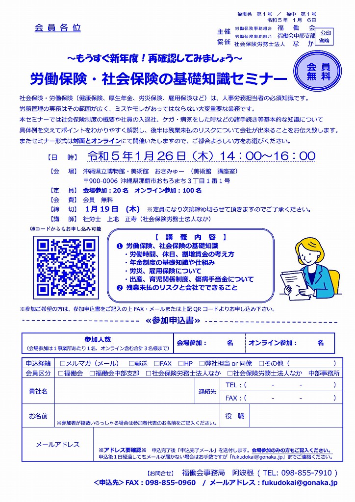 内容は【労働保険・社会保険基礎知識セミナー】となります。