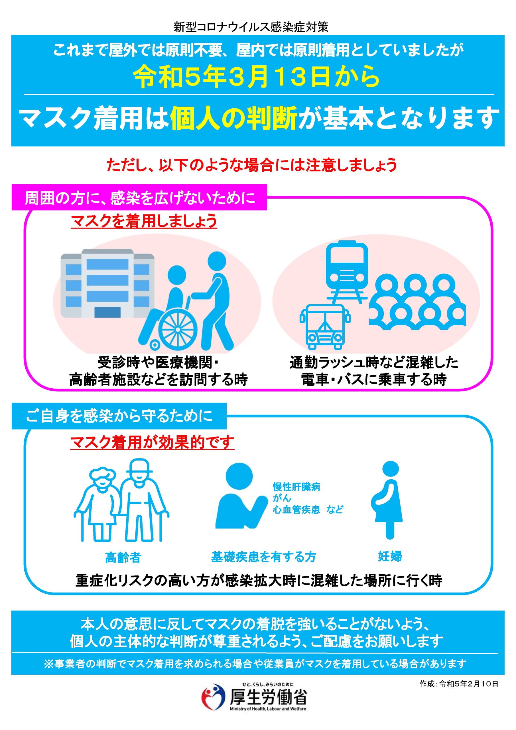 現時点では、外を出歩いている方々のマスク着用率は半々(50%位)かなという感想です。混雑した場所等は、引き続き着用を心がけます。