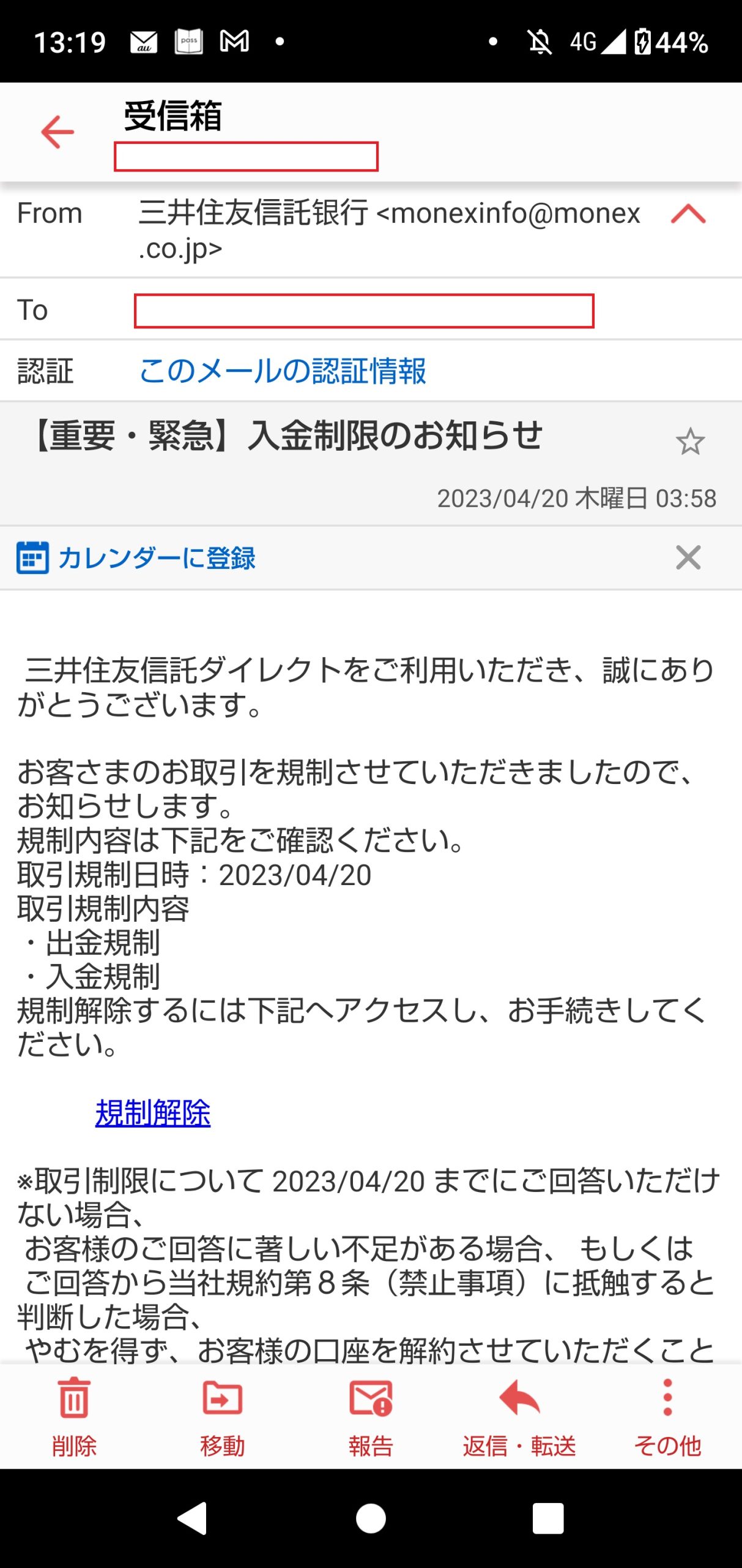 Case2 件名:【重要・緊急】入金制限のお知らせ
