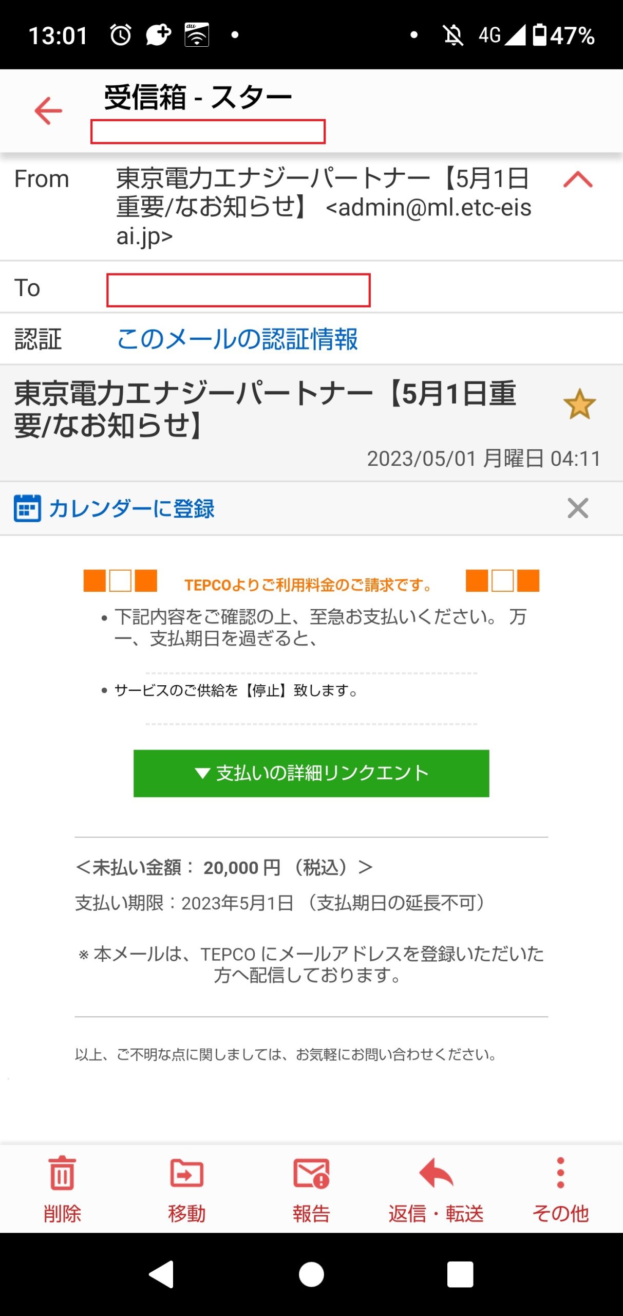 Case1 件名:東京電力エナジーパートナーから【5月1日重要/なお知らせ】