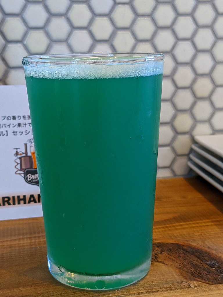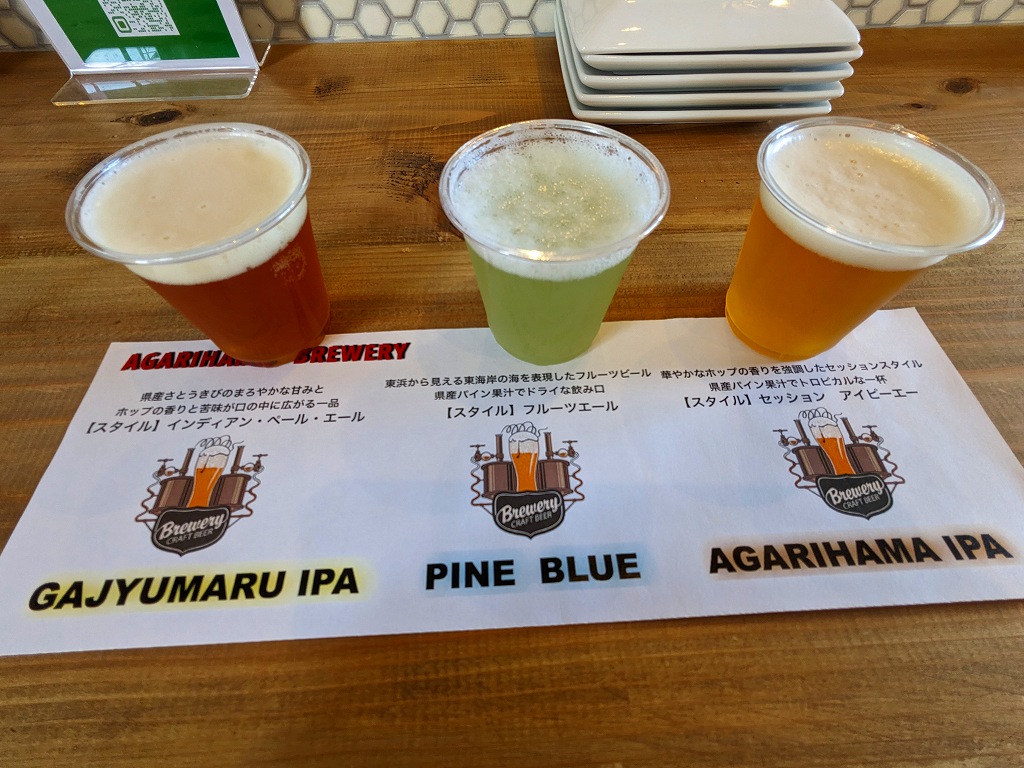 珍しい青色のビールをはじめ三種類のクラフトビールを飲みました。